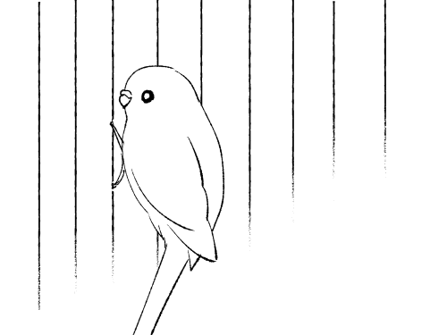 今日は一瞬、籠の中にいるはずのインコさんがいない!と思ったのですが、よく見ると籠の側面に貼り付いて遊んで(?)いました。