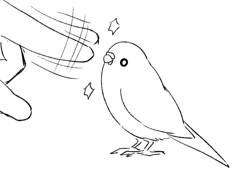 きょうは、とりあえずインコさんのくちばしの前で、指を高速で動かしてみました。