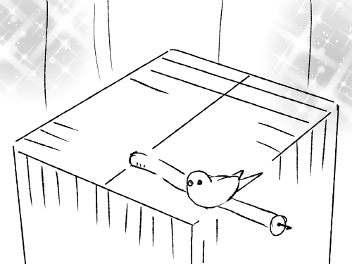 今日は天気が良かったので、インコさんの籠を窓辺に移動し、レースカーテン越しに日向ぼっこしてもらいました。