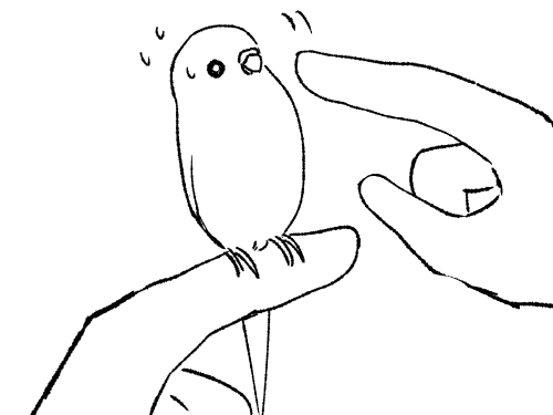 インコさんもちょっと避けますが、反撃して指先をつんつんしてきます。