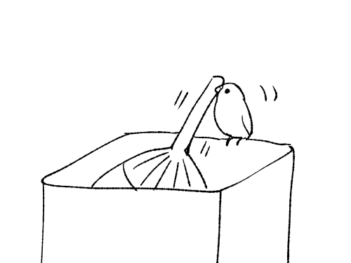 放鳥時、なにやらガタガタ音がすると思ったら、インコさんがうちわを挟んで引っ張り上げていました。