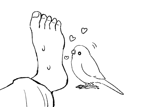 放鳥時に足を投げ出していると、インコさんが近寄ってきて足と遊び始めます。