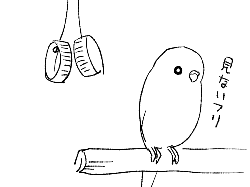 とまり木から体を伸ばせば届く位置に取り付けてみましたが、全く遊ばず。
