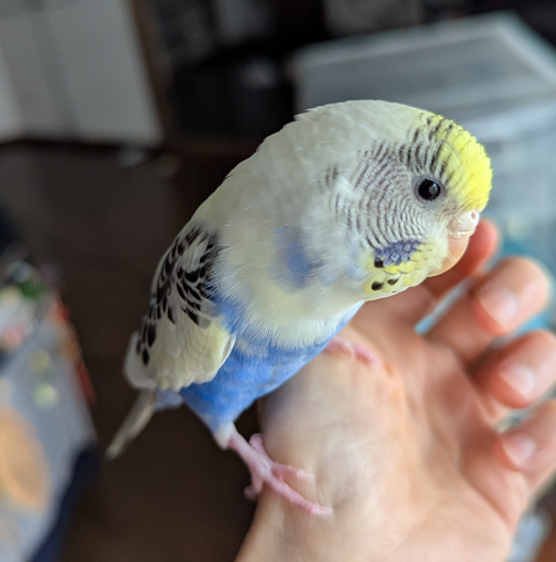 この子は成長するにつれて頭の黄色がくっきりしてきて、お腹の青色とのバランスが絶妙で、写真ではあまり伝わらないかもしれませんが、ちょっときれいになりすぎでは~?と思っています。