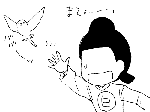 今日は珍しくインコさんを両手でつかまえることができたので、ここぞとばかり背中に顔を近づけ、スンスン匂いをかいでみました。